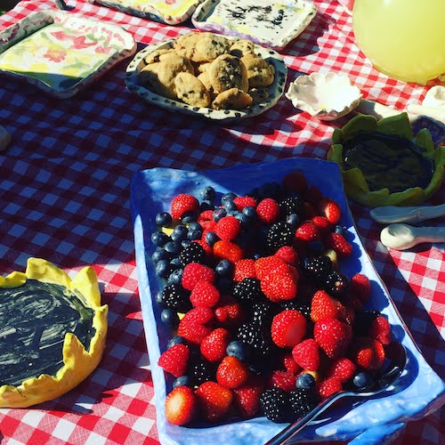 Register now for a week in which we make the wares for a potluck feast. Starting with clay, we will design and hand-build pieces to serve our favorite dish or beverage. We will hand dye and print fabric table settings. Top it off with ambiance: music, flower bouquets and lanterns all homemade in the outdoor garden studio. Meanwhile, song, games, snacks, water play, and more will bring us together as a mini artist colony for the week. All clay pieces will be glazed and fired in time for a potluck dinner on Friday, Aug. 4, where family members are invited to enjoy our work and share food.